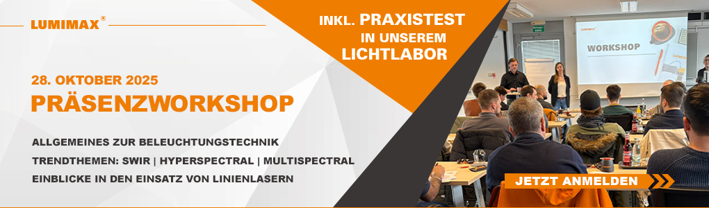 Insgesamt erweitern Sie im Laufe des Workshops sowohl Ihr theoretisches Wissen als auch Ihre praktische Erfahrung zur schnellen und optimalen Beleuchtungsauswahl für Ihre Bildverarbeitungsapplikation. Lernen Sie dabei bestehende Prozesse zu optimieren und schwierige Beleuchtungsaufgaben leichter zu lösen.